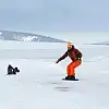 Uzun yıllardır snowboard ile uğraşan Uğur Doğanay (33) ve Özgür Gökcan, (31) hafta sonunda Alisofu köyünde karla kaplı tarlaların etrafında farklı bir heyecan yaşadı.