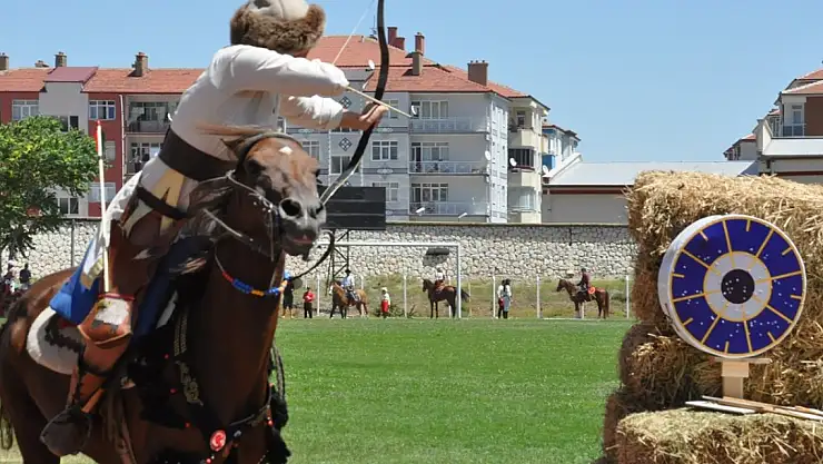 Sporcular, at üzerinde akrobatik hareketlerle belirlenen hedeflere ok attı. Yarışmacılar yarın da kabak bendinde mücadele edecek.