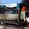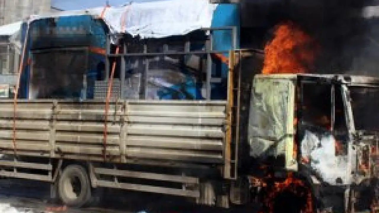 Hakkari'nin Yüksekova ilçesinde bir bankaya ait iki ATM makinesini taşıyan kamyonet, Eski Cezaevi Kavşağı'nda ateşe verildi.