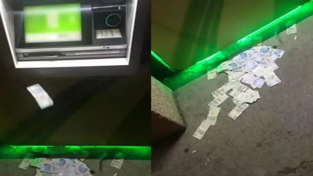 ATM'nin hazneye çekemeyince geri bıraktığı fazla paralar yola saçıldı. Çevredeki vatandaşlar durumu polise bildirdi.
