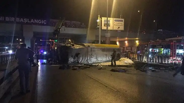 Alınan bilgiye göre, D-100 Karayolu üzerinden Topkapı istikametine seyreden eden akaryakıt yüklü tanker, Avcılar mevkisindeki köprülü kavşak yakınında kontrolden çıkarak devrildi.