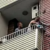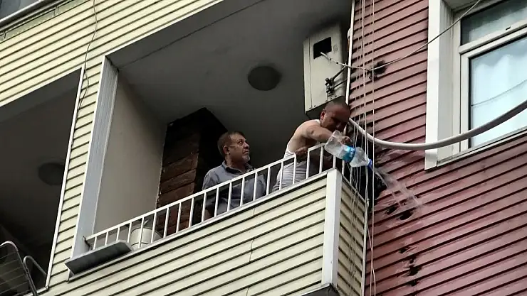 Avcılar'da binanın tutuşan plastik kaplamasına sürahiyle su dökerek müdahale