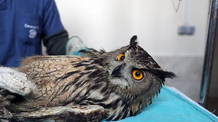 Avcıların vurduğu, uçma yetisini kaybeden puhu kuşuna özel bakım