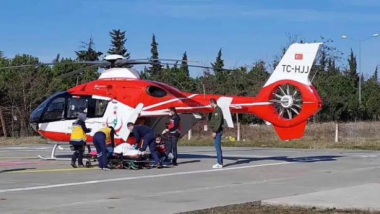 Samsun'da avcılar tarafından kazara vurulan çiftçi, ambulans helikopterle hastaneye yetiştirildi.