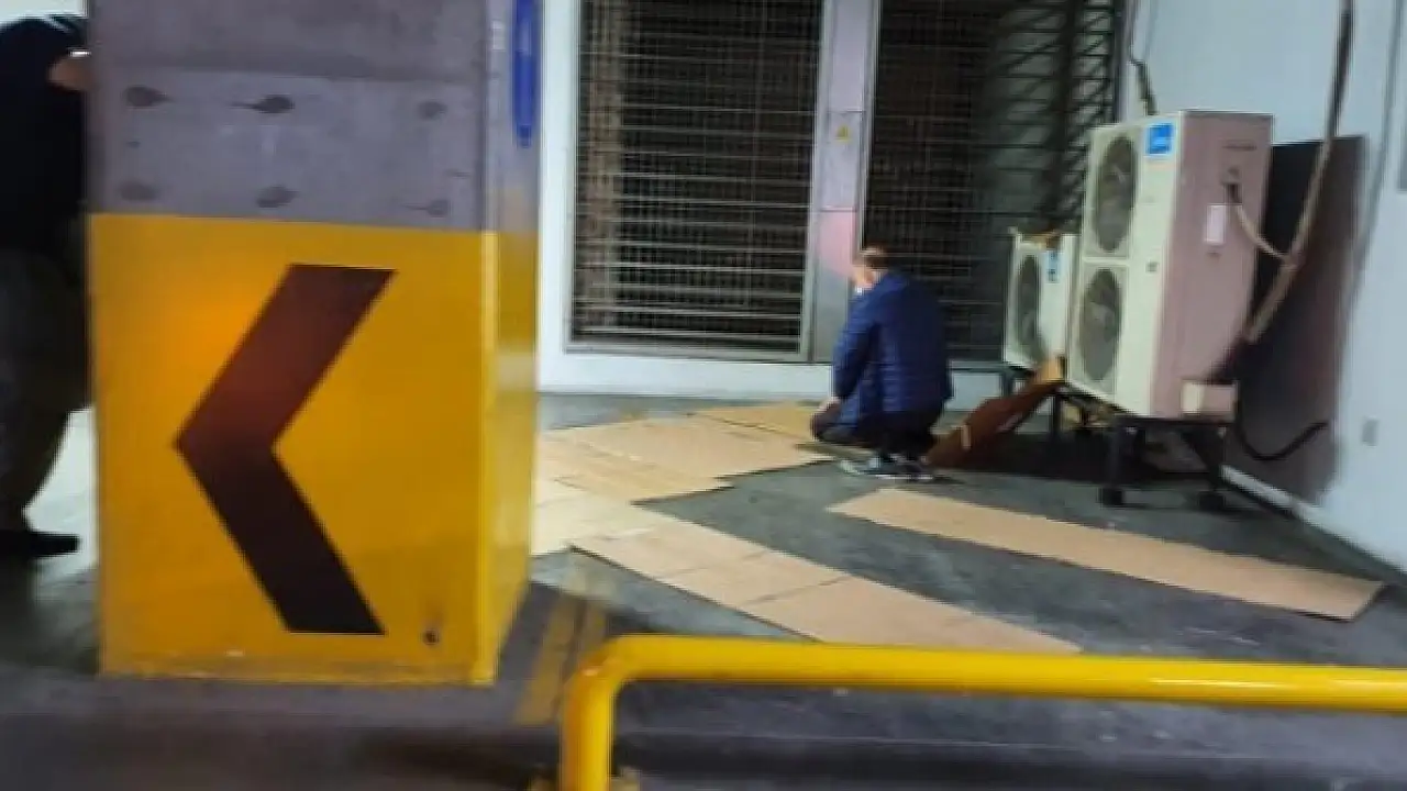 Bazı AVM'ler pandemiyi gerekçe göstererek mescidleri kapattı. Vatandaş namazını otoparkta karton sererek kılıyor.