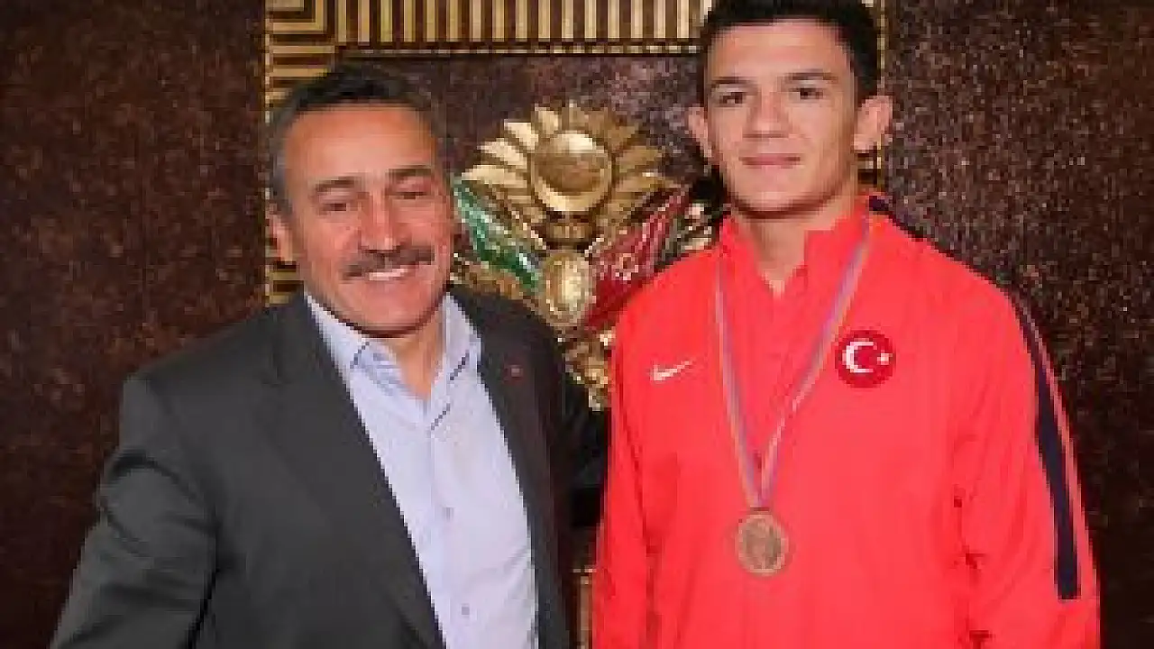 İşitme engelliler Avrupa Şampiyona'sında 73 kiloda Avrupa 3.'sü olan Yusuf Çelik Belediye Başkanı Mehmet Tutal'ı makamında ziyaret etti.