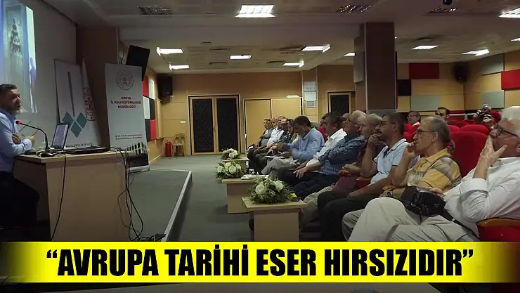 Avrupa devletlerinin tarihi eser hırsızlığı yapma yöntemlerini de anlatan Muşmal “Kapsamlı şekilde coğrafi keşifler yaptılar. Sanayi inkılabından sonra da barbarlık dönemine girdiler. Önce Pompei’yi buldular. Anadolu’ya gelişlerinin sebebi ise kendi tarihlerini Yunan tarihi ile birleştirebilmekti. Anadolu şehirlerinde görevlendirdikleri konsoloslar tarihi eser keşfi yaptı, tren yolu yapımında çalışan mühendisler de kaçırma işini üstlendi. Mesela Almanya’nın Konya’da görevlendirdiği konsolos çok iyi Osmanlı Türkçesi biliyordu ve Selçuklu üzerine ihtisas yapmış biriydi.1907 yılında Konya’ya gelir gelmez de ilk iş olarak ‘Konya’ adlı bir kitap yazıp bastırmıştır. Bu kitapta Beyhekim Mihrabının yerinde olduğunu görüyoruz” şeklinde konuştu.
