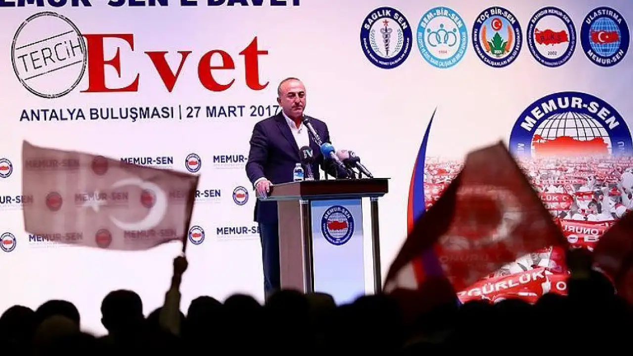 Memur Sendikaları Konfederasyonu (Memur-Sen) tarafından Mimar Sinan Kültür ve Kongre Merkezi'nde düzenlenen "Memur-Sen'e Davet Referanduma Evet" başlıklı programda konuşan Çavuşoğlu, Memur-Sen'in sıradan bir sendika, sadece kendi üyelerinin çıkarlarını düşünen bir sivil toplum örgütü olmadığını, 15 Temmuz darbe girişiminde vatan için millet için özgürlük ve demokrasi için dimdik ayakta duran bir sendika olduğunu söyledi.
