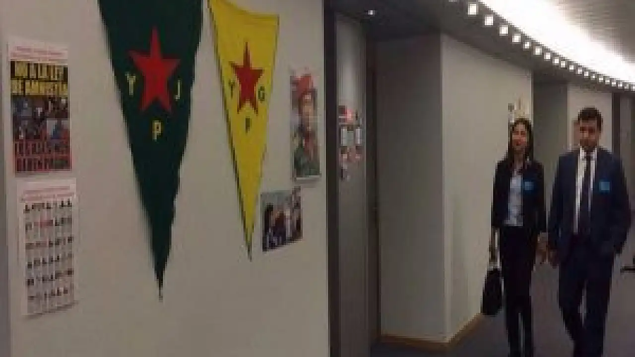 Avrupa Parlamentosu'nun Türkiye'de kan dökmeye devam eden terör örgütü PKK'ya desteği resmiyet kazandı. Terör örgütünün siyasi kanadı olarak çalışan HDP'nin Eş Genel Başkanları Selahattin Demirtaş ve Figen Yüksekdağ Avrupa Parlamentosu'nun koridorlarına asılan terör örgütleri YPG ve YPJ'nin paçavraları altında poz verdi.