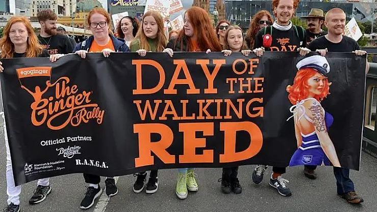 Kızıl ve Neredeyse Turuncu Birliği (RANGA) tarafından Melbourne Federasyon Meydanı'nda düzenlenen yürüyüşe, yaklaşık bin 500 kızıl saçlı Avustralyalı katıldı.