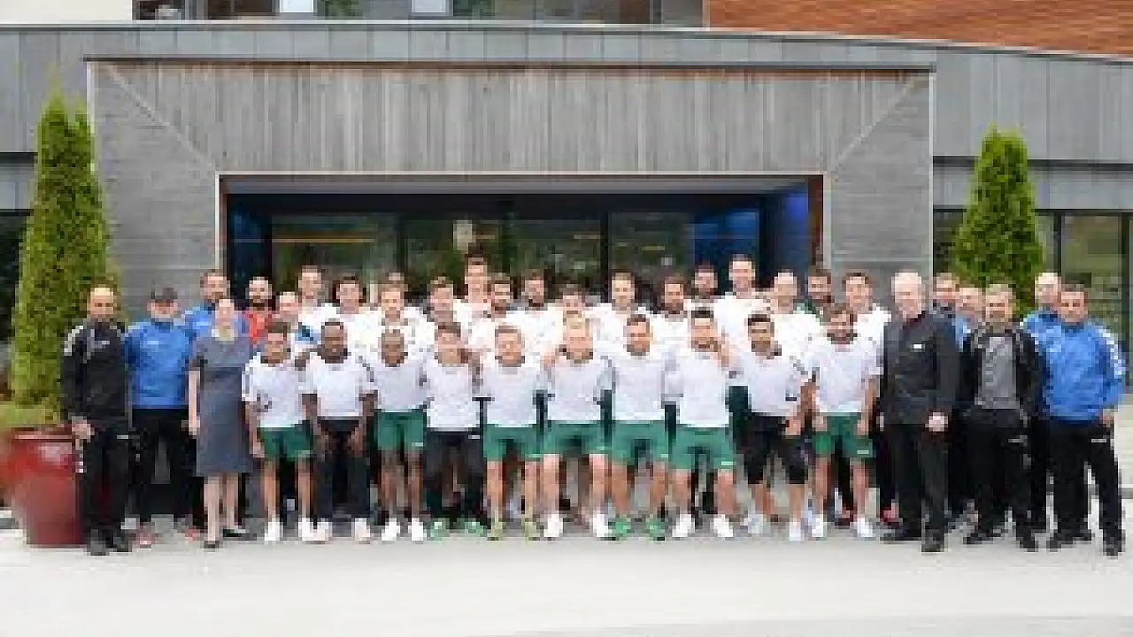 Torku Konyaspor, kamp yaptığı Langenfeld'deki Aqua Dome Hotelden ayrılmadan önce otel üst düzey yönetimi ile bir hatıra fotoğrafı çektirdi.