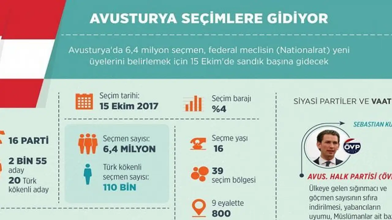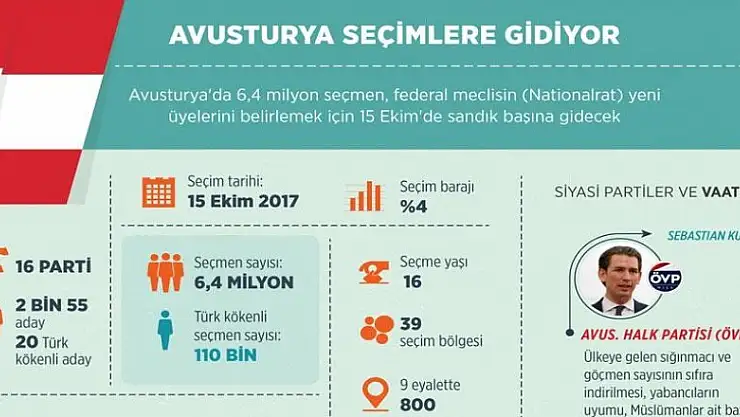 Yaklaşık 8,7 milyonluk nüfusa sahip Avusturya'da 6,4 milyon seçmen, meclisin 183 yeni üyesini belirlemek üzere yarın oy verecek.