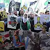 Suriyeli muhaliflerin bayrakları taşıyan göstericiler, "Suriye'ye özgürlük", "Kahrolsun Esed", "Suriye'den ellerini çek","İdlib'e özgürlük" sloganları attı.
