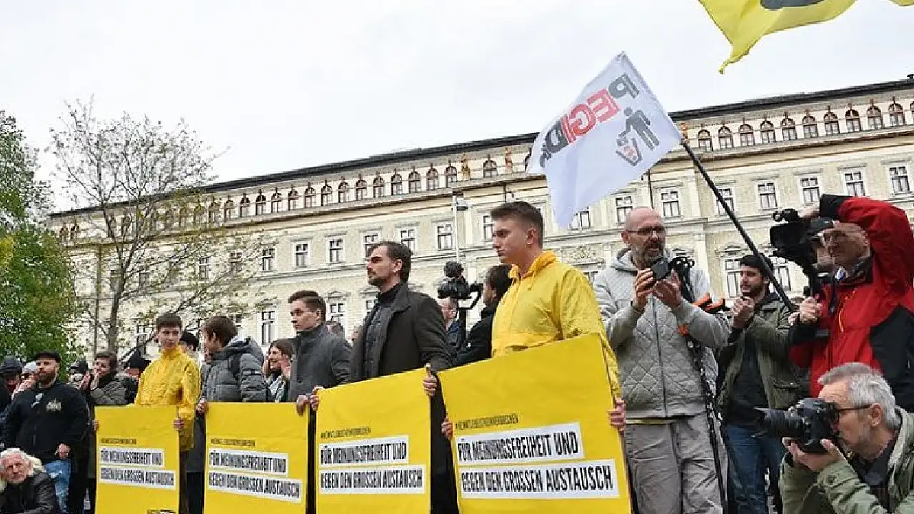 Adalet Bakanlığı önünde toplanan ırkçı, mülteci ve Müslüman karşıtı "Kimlikçiler Hareketi" üyesi yaklaşık 150 kişinin gösterisine karşılık, ırkçılık karşıtı 2 binin üzerinde kişi de Viyana Üniversitesi önünde "Irkçılığa karşı ayağa kalk", "Nazilere hayır", "Irkçılık ve Faşizme karşı omuz omuza" yazılı pankartlar taşıyarak gösteri düzenledi.