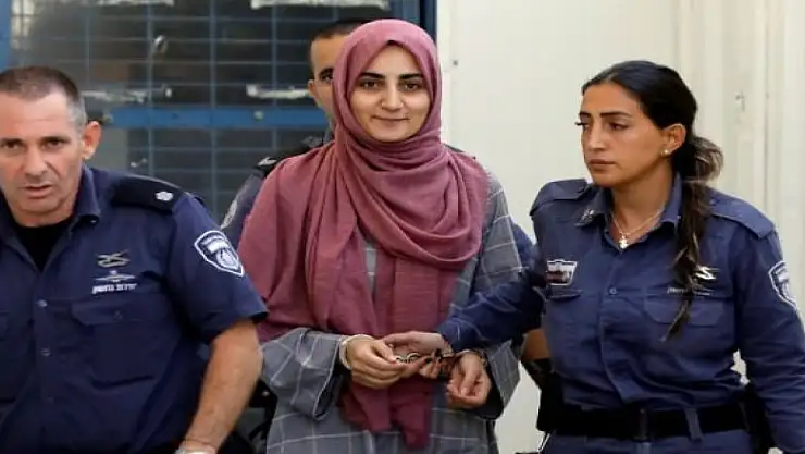 11 Haziran'da, Kudüs'ten Türkiye'ye dönmek için geldiği Tel Aviv'deki Ben Gurion Havalimanı'nda gözaltına alınan Ebru Özkan, bugün prangayla mahkemeye çıkarılmıştı.