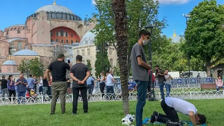 Cami önünde önlemler dolayısıyla ibadet edemeyen vatandaşlar, meydanda çim üzerinde cemaat oluşturarak ikindi namazı kıldı. Bazı vatandaşlar da Ayasofya'nın ibadete açılması sebebiyle şükür namazı kıldı.