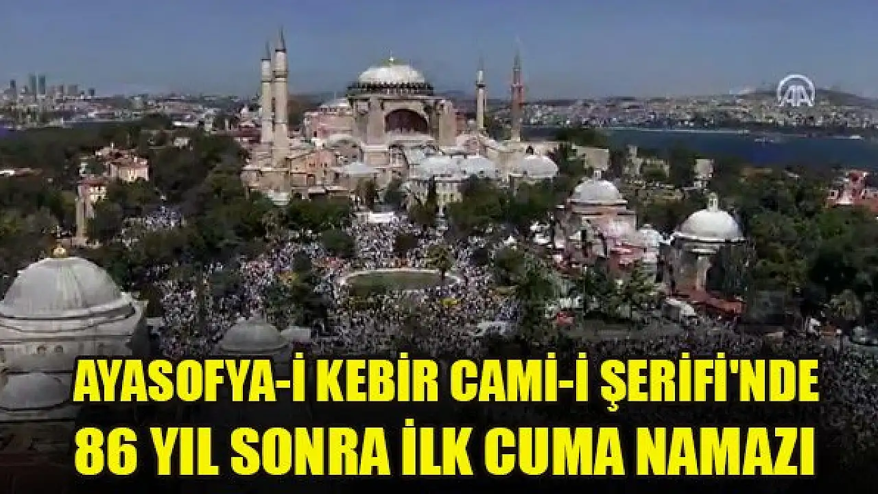 Ayasofya-i Kebir Cami-i Şerifi, 86 yıl sonra kılınan cuma namazıyla ibadete açıldı. Cumhurbaşkanı Recep Tayyip Erdoğan, TBMM Başkanı Mustafa Şentop, Cumhurbaşkanı Yardımcısı Fuat Oktay ve MHP Genel Başkanı Devlet Bahçeli'nin yanı sıra çok sayıda kişi namazda saf tuttu.