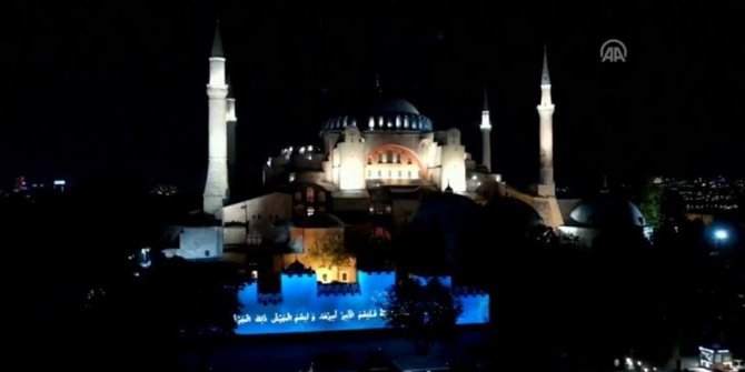 2. Mehmet'in, aralıklarla 54 gün süren kuşatmanın ardından 29 Mayıs 1453 Salı günü gerçekleşen fetihten sonra ilk cuma namazını kıldığı, fethin simgesi Ayasofya'nın içinde Fetih Suresi tilavet edildi.