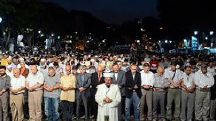 Ellerinde, "Zalimler için yaşasın cehennem, seninleyiz Mursi" yazılı pankartlarla meydanda toplanan ve tekbir getirerek, çeşitli sloganlar atan yaklaşık 2 bin kişilik grup, iftar yaptıktan sonra birlikte akşam namazı kıldı. Ardından Kur'an-ı Kerim okundu. Bazı üyelerin şiir okumasından sonra gruptakiler teravih namazına geçti.