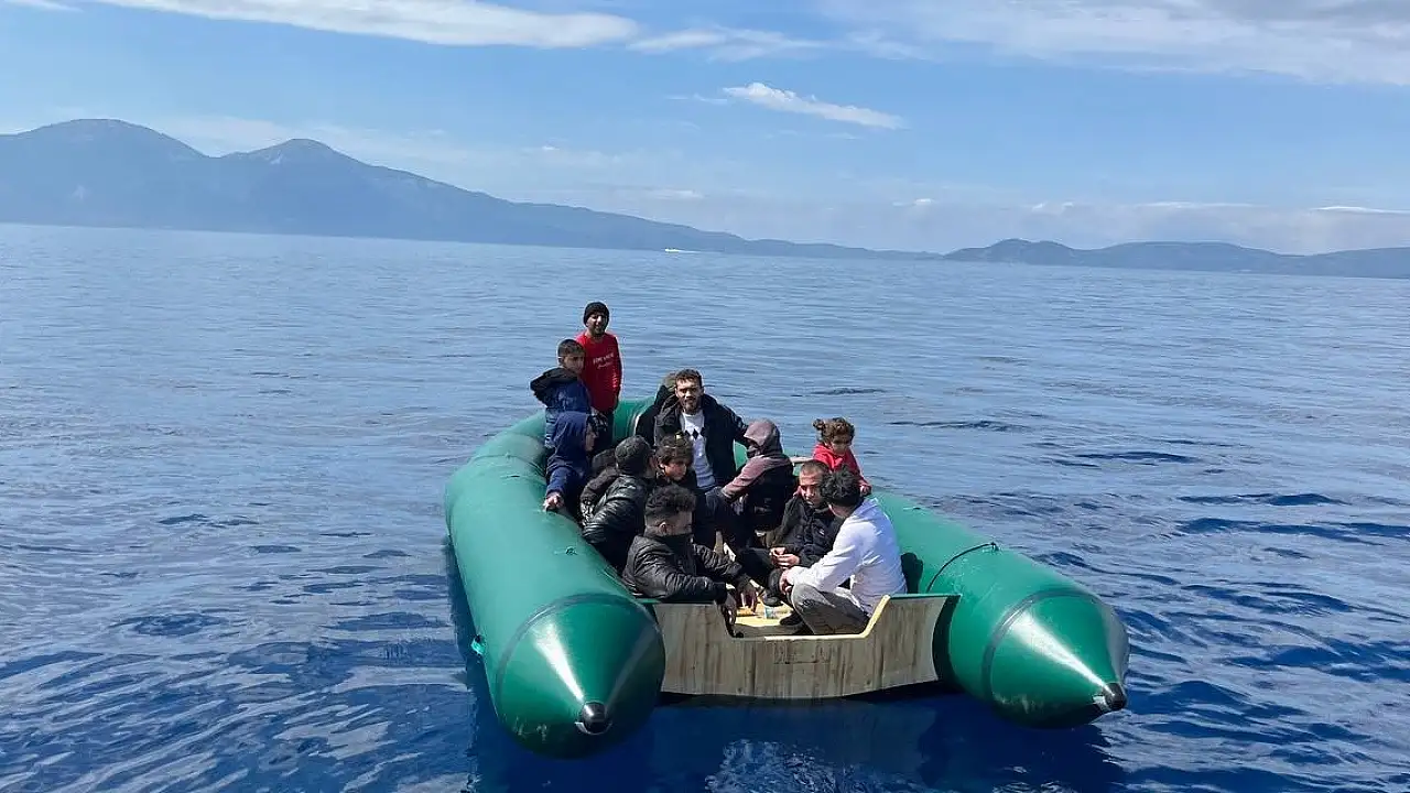 Aydın'ın Kuşadası ilçesi açıklarında lastik bot içerisindeki 13 düzensiz göçmen kurtarıldı.
