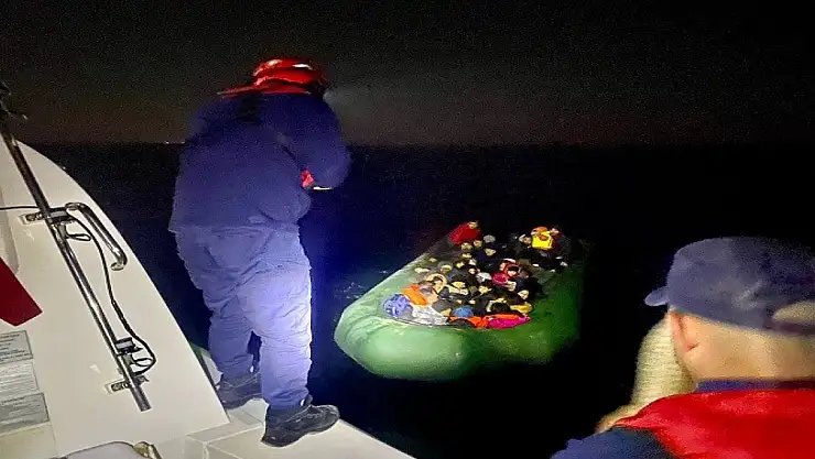 Aydın'ın Kuşadası ilçesinde lastik bot içerisindeki 31 düzensiz göçmen sahil güvenlik ekipleri tarafından yakalandı.