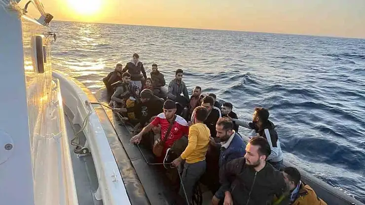 Aydın'ın Didim ilçesi açıklarında Yunanistan unsurları tarafından Türk karasularına geri itilen lastik bottaki 36 düzensiz göçmen kurtarıldı.