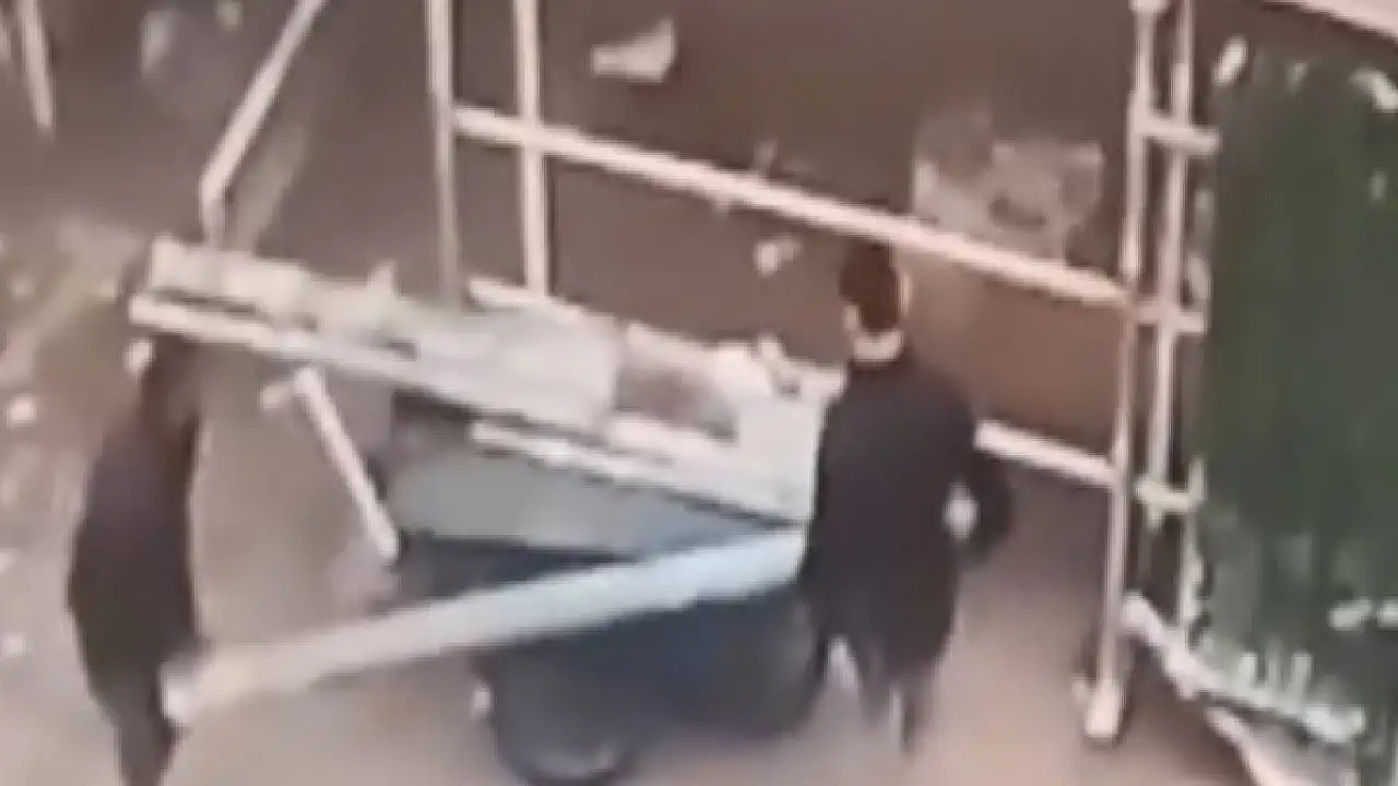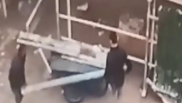 Mahallede dolaşan hurdacılar, inşaat içine girdiklerinde aydınlatma direğini fark etti. Aydınlatma direğini parçalara ayıran şüpheliler, el arabalarına yükleyerek, bina önünden ayrıldı. Direğin işçiler tarafından devrildiği ve yaşanan hırsızlık anları güvenlik kamerasına yansıdı.
