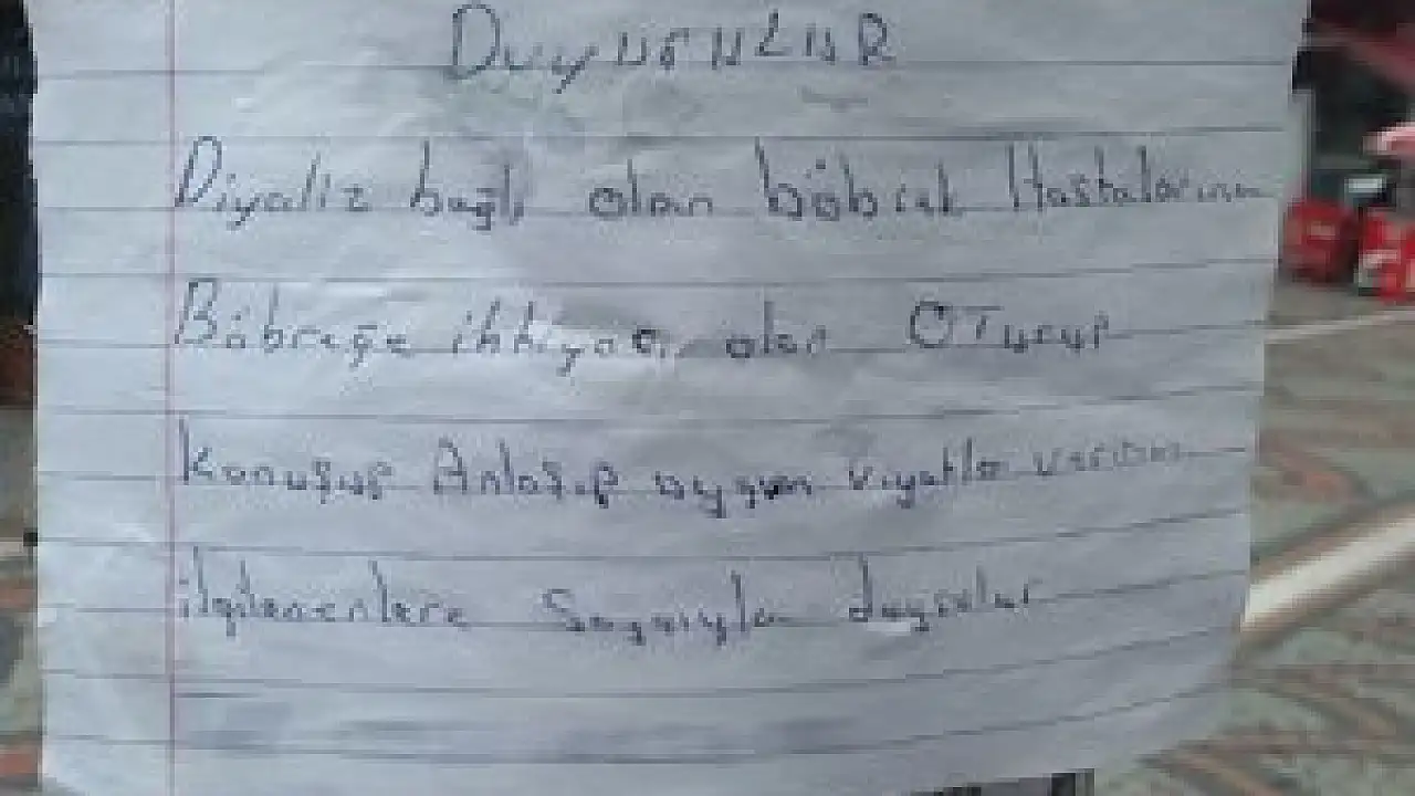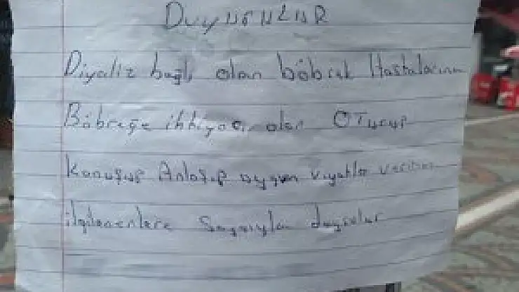 Kağıdın alt kısmında telefon numarasının yer aldığı satılık böbrek ilanı, görenleri ‘Bu kadarına da pes’ dedirtti. İlanında, “Diyalize bağlı böbrek hastalara, böbreğe ihtiyacı olanlar, oturup konuşulup, anlaşılıp uygun fiyatla veririm ilgilenenlere saygıyla duyurulur” ifadeleri yer aldı.