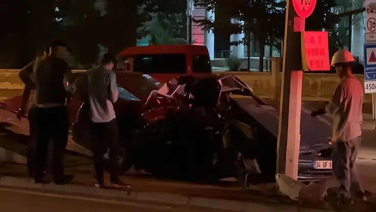 Aydınlatma direğine çarparak hurdaya dönen otomobil sürücüsü yaralandı