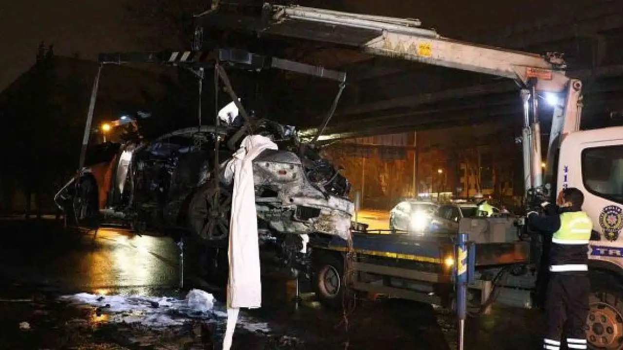 Aydınlatma direklerine çarpıp alev alan otomobilin sürücüsü hayatını kaybetti