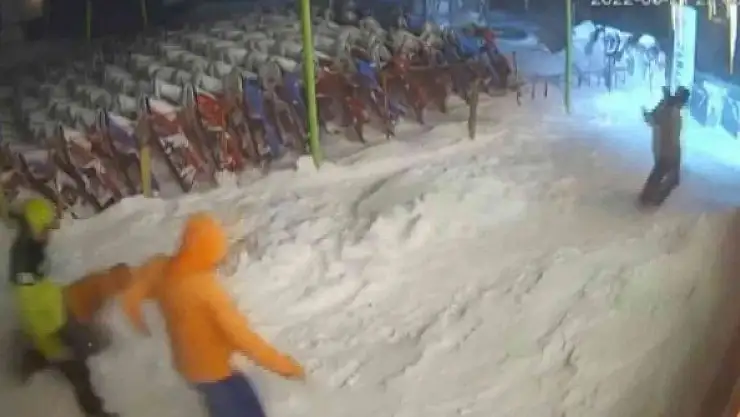 Türkiye'nin en önemli kış turizm merkezlerinden biri olan Uludağ'da 5 arkadaş otelden dışarıya çıkacakları esnada çöp konteynırında, yemek arayan ayı tarafından kovalandılar. Bu anlar otelin güvenlik kamerasına saniye saniye yansıdı.