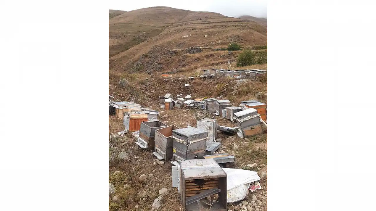 Rize'nin İkizdere ilçesine bağlı Anzer Yaylası'nda bir ayı 15 arı kovanına zarar verdi.