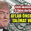 Aylar öncesinden 8 Ekim tarihli yüklü dolar alım-satım emri verilmişti. Analistler 'Ne olduğunu bilemiyoruz' diyerek uyarmıştı. O gün geldiğinde Trump'ın Tweet'leri ve dolarda yukarı hareketler sıralandı.