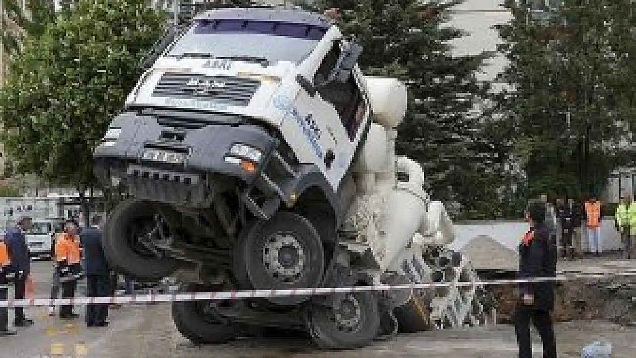Başkentte foseptiği temizlemeye gelen Büyükşehir Belediyesi Su ve Kanalizasyon İdaresine (ASKİ) ait kanalizasyon temizleme kamyonu, çalışmalar sırasında çukura düştü.