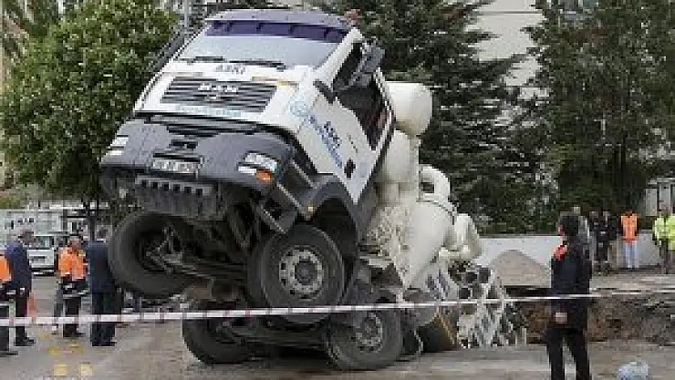 Arka bölümü ve makine kısmı çukura inen kamyonu kurtarmak için başlatılan çalışmalar devam ediyor. Kamyonun çukura düşme anı, yakında bulunan bir marketin güvenlik kamerasına da yansıdı.