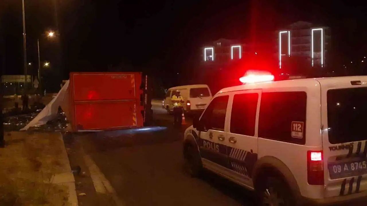 Kaza, bir AVM'nin de bulunduğu OSB kavşağında akşam saatlerinde meydana geldi. Edinilen bilgiye göre, 45 AFM 265 plakalı kamyon sürücüsü henüz bilinmeyen bir nedenle direksiyon hakimiyetini kaybedince kullandığı kamyon devrildi. Kazayı görenler durumu 112 Acil Çağrı Merkezi'ne bildirdi. İhbar üzerine bölgeye polis ve sağlık ekipleri sevk edildi. Kısa sürede olay yerine gelen trafik ekipleri, kaza dolayısıyla durma noktasına gelen trafiği düzenlemek için çalışma başlattı. Kazada ölen yada yaralanan olmazken, vatandaşlar aynı kavşakta çok sık kaza yaşandığını belirterek çözüm bulunmasını istediler.
