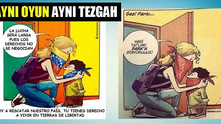 Gezi döneminde Türkiye'de yapılan karikatürün aynısı, şimdi de Venezuela'da halkı sokağa çağırmak için yapılıyor.
