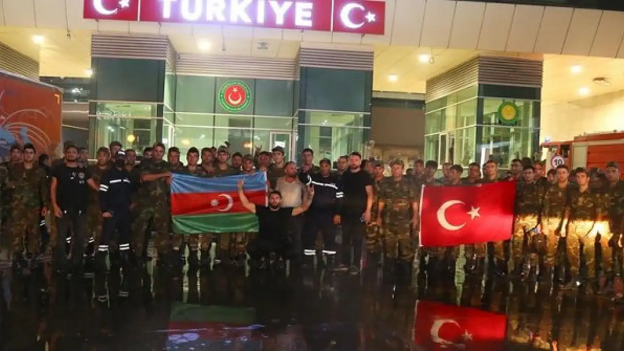 Consisting of 53 vehicles including 41 fire trucks and 220 personnel, the team was received by excited Turkish citizens who showed their appreciation for the Azerbaijani and Turkish flags.