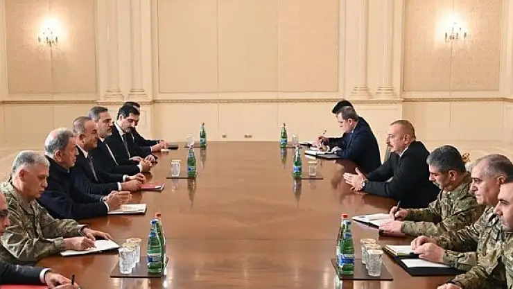 Azerbaycan Cumhurbaşkanı İlham Aliyev, Dışişleri Bakanı Mevlüt Çavuşoğlu, Milli Savunma Bakanı Hulusi Akar, Kara Kuvvetleri Komutanı Orgeneral Ümit Dündar ve Milli İstihbarat Teşkilatı (MİT) Başkanı Hakan Fidan'ı kabul etti.