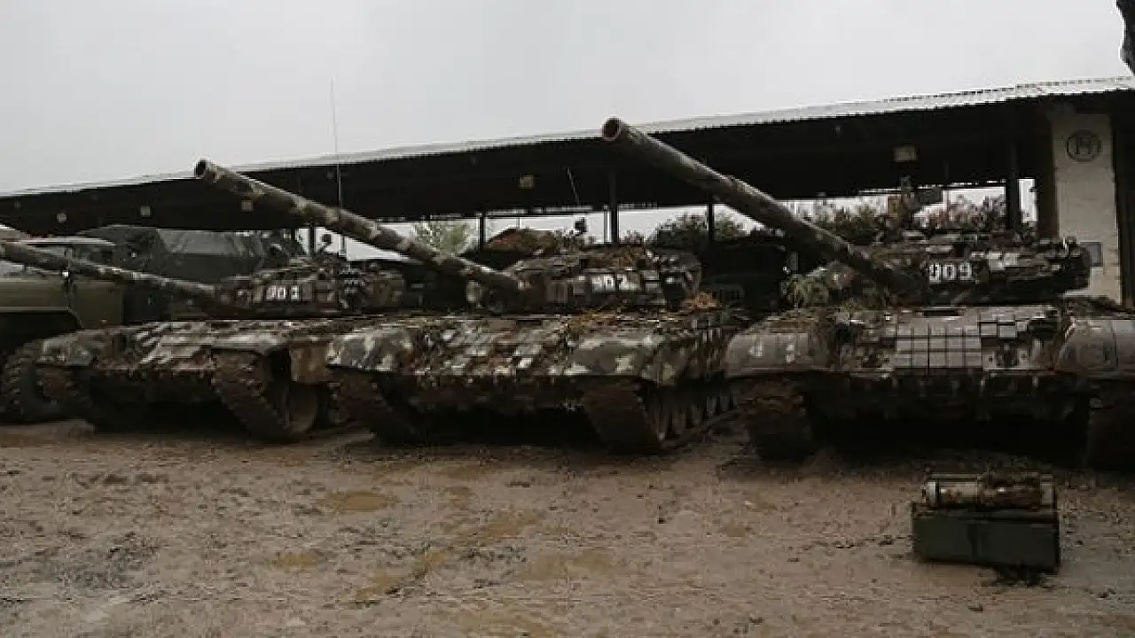 Fotoğraflarda, ele geçirilenler arasında çok sayıda tank, askeri araç ve mühimmatın olduğu görülüyor.