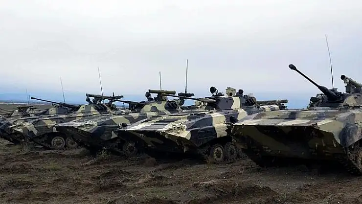 Azerbaycan Silahlı Kuvvetlerinin zırhlı birlikleri, Ermenistan-Azerbaycan cephe hattına yakın bölgelerde tatbikat gerçekleştirdi.