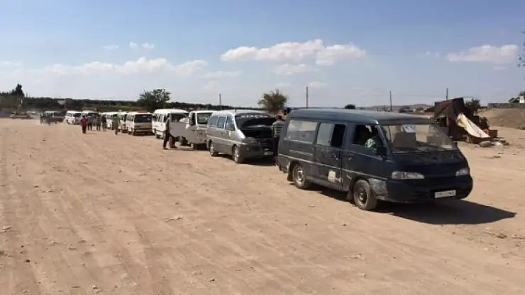 Cerablus'tan kaçarak Halep'in Azez ilçesine yerleşen Suriyeliler, Cerablus'un kurtarılması üzerine konvoylar eşliğinde evlerine dönüyor.