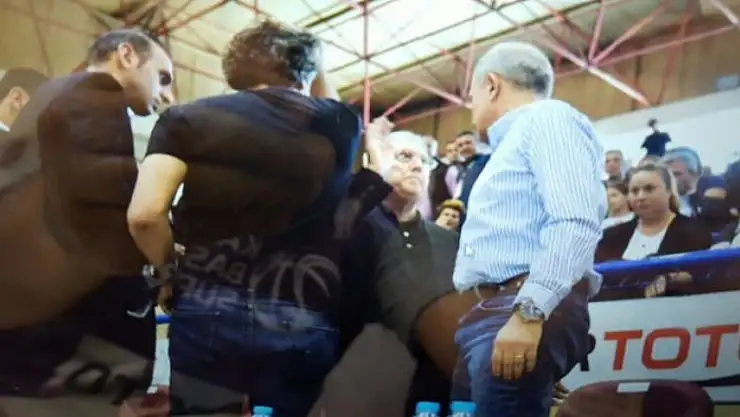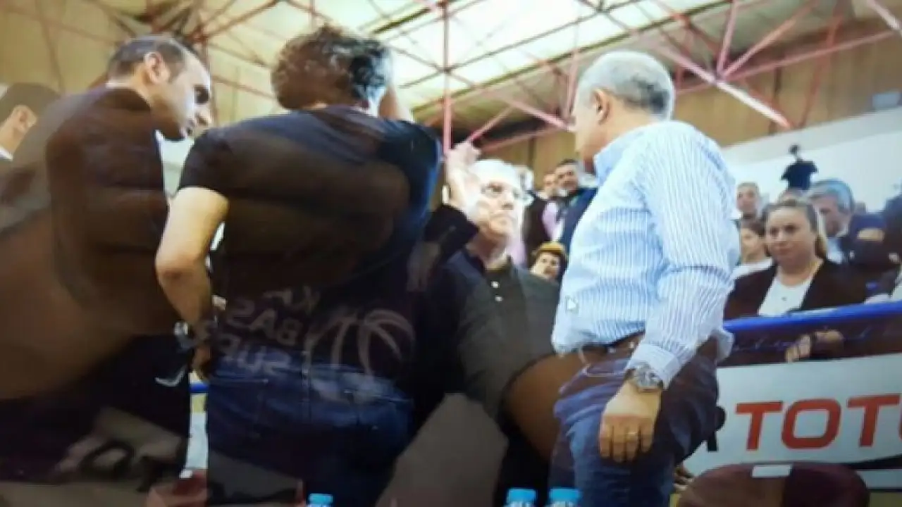 Fenerbahçe - Yakındoğu Üniversitesi maçı sırasında iki takım yöneticileri arasında arbede yaşandı. Fenerbahçe Başkanı Aziz Yıldırım, rakip takımın başkanı Işık Eyigüngör'e tokat attı!