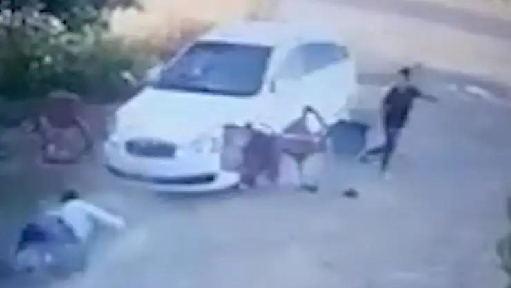 ŞANLIURFA'da evlerinin önünde oturan Mustafa Dağ ile oğlu Mahmut Dağ'a otomobil çarptı. Çarpan araçtan inen maskeli 3 kişi, baba ve oğluna sopayla saldırarak darbetti. O anlar kameraya yansıdı.