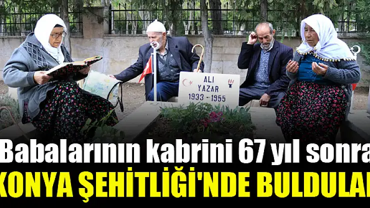 Elazığ'da 1955'te vatani görevini yaparken tedavi için gönderildiği Konya'daki hastanede şehit düşen babaları Ali Yazar'ın mezarının Konya Şehitliği'nde olduğunu yıllar sonra öğrenen kızları, babalarının kabrine ilk ziyaretlerini gerçekleştirdi.