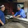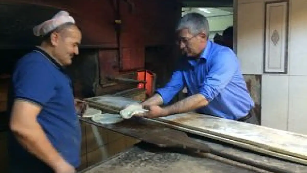 Daha sonra Yavuzel ile fırının başına geçen Mehmet Babaoğlu, birlikte yağ somunu yaptı.