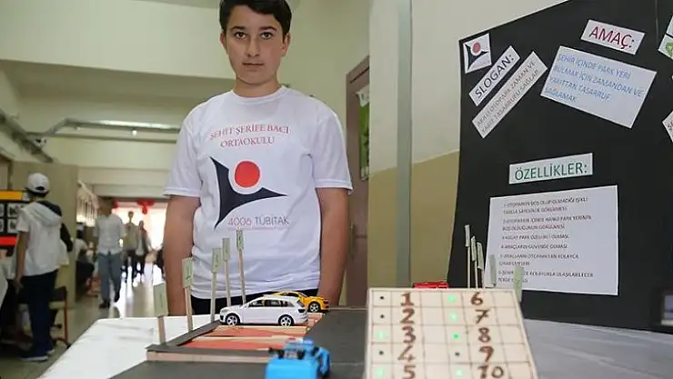 Şehit Şerife Bacı Ortaokulu 7. sınıf öğrencisi Ahmet Erhan Tırpanoğlu, otopark sorununa pratik bir çözüm sunmak için geliştirdiği projesine "Akıllı Otopark" adını verdi.