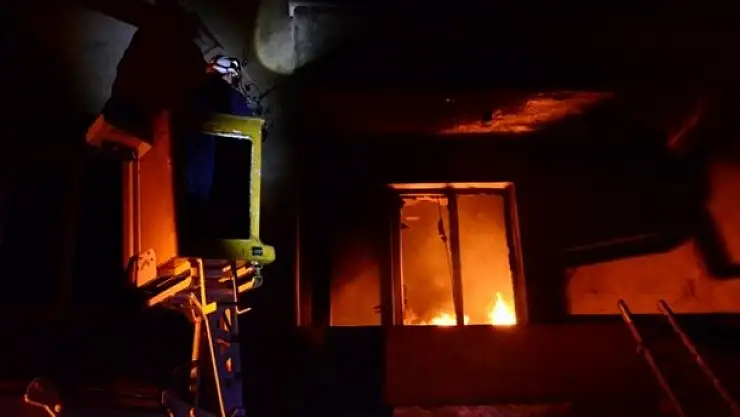 İtfaiye ekiplerinin müdahalesiyle yangın söndürüldü, ev kullanılmaz hale geldi.