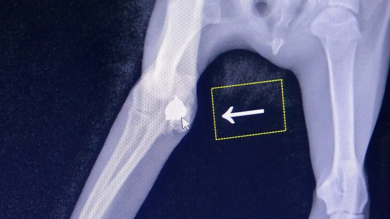 Veteriner Hekim Berk Canbaz, yavru kedinin kendilerine trafik kazası geçirdiği gerekçesiyle getirildiğini ancak yapılan tetkiklerde sağ ön bacağından havalı tüfekle vurulduğunun belirlendiğini ifade ederek, "Ayağında topallama şikayetiyle geldi. Yapılan muayeneden sonra röntgen çektik. Röntgen sonucunda da sağ ön bacağı diz kapağı bölümünde saçma olduğunu gördük. Ekleme saplanmış bir şekildeydi. Müdahale edilebilecek veya operasyonla çıkarılabilecek bir durumda değildi. Topallama şikayeti devam edecektir ama o bölgeye müdahale etmemiz mümkün değil. Yaptığımız incelemede gördük ki havalı tüfekle vurulmuş. Ömür boyu bu saçmayla yaşamak zorunda kalacak. Çünkü saçmayı o bölgeden aldığımızda eklemin dağılması söz konusu. Bu da bacağını kaybetmesine kadar gidebilir. Maalesef ömür boyu topallayarak yaşayacak" dedi.