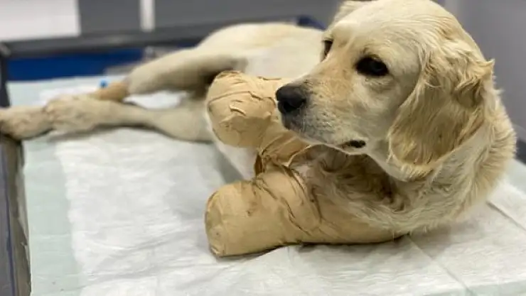 Ön bacakları kesilmiş halde bulunan yavru köpeğe Samsun'da özel bir hayvan kliniğinde cerrahi müdahelede bulunuldu. Pamuk isimli yavru köpeğin tedavisi klinikte sürüyor.